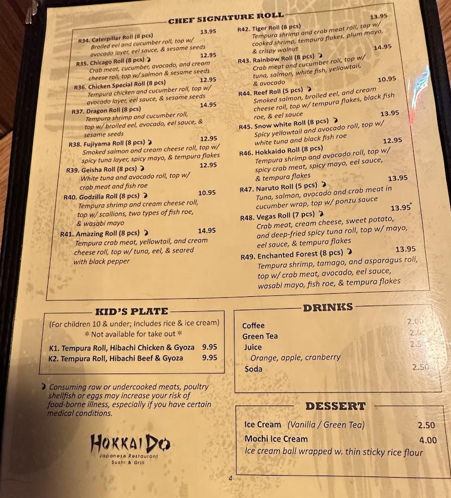 The menu at HokkaiDo is diverse, showcasing the best of Japanese cuisine. It includes appetizers like gyoza and tempura. Sushis like the Alabama Roll and signature options are well-crafted specialties.